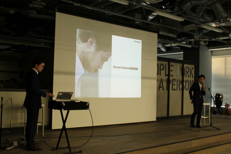 第三部では、株式会社サイバーエージェント インターネット広告事業本部 局長の高橋航氏と同本部 エグゼクティブコンサルタントの勝浦和馬氏が登壇。オウンドメディアの集客戦略について紹介いただきました。